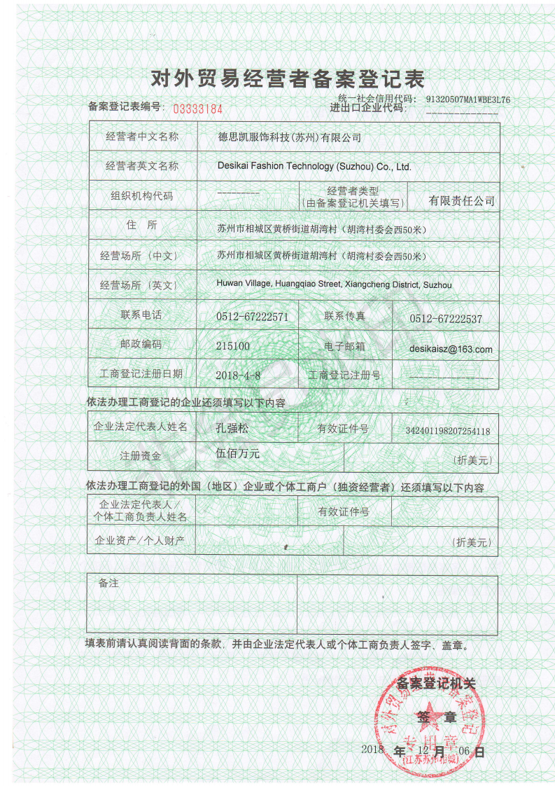 CopyRight ? 2020 德思凱服飾科技(蘇州)有限公司 蘇ICP備19043461號 技術支持:仕德偉科技